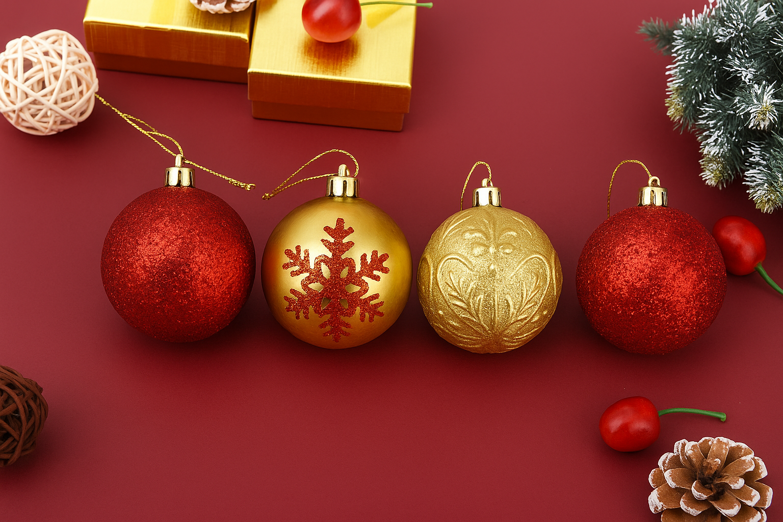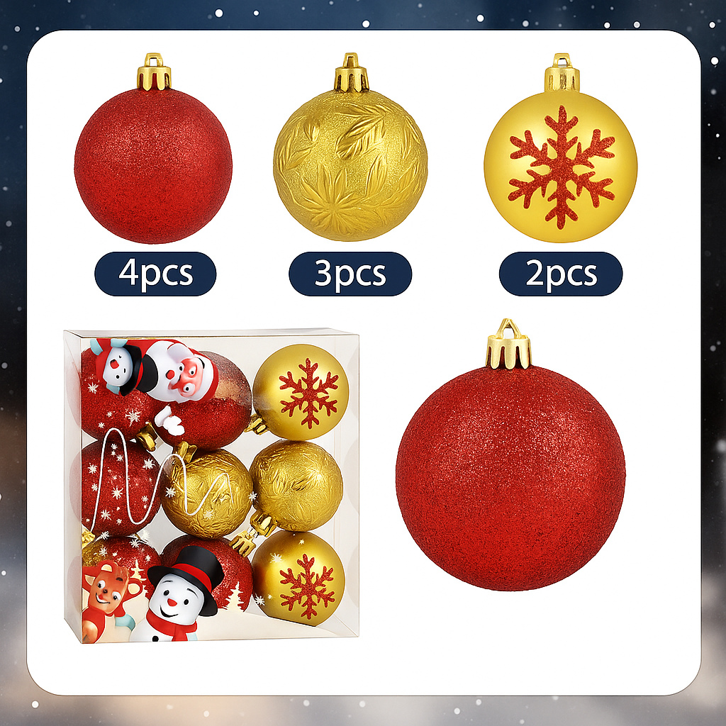 9PC Christmas Bauble Set Red Gold Mix Festive HolidayDecor Red and Gold Two-Tone Shatterproof ChristmasTree Decorations Luxury Hanging Baubles Perfect forChristmas Party Decorations