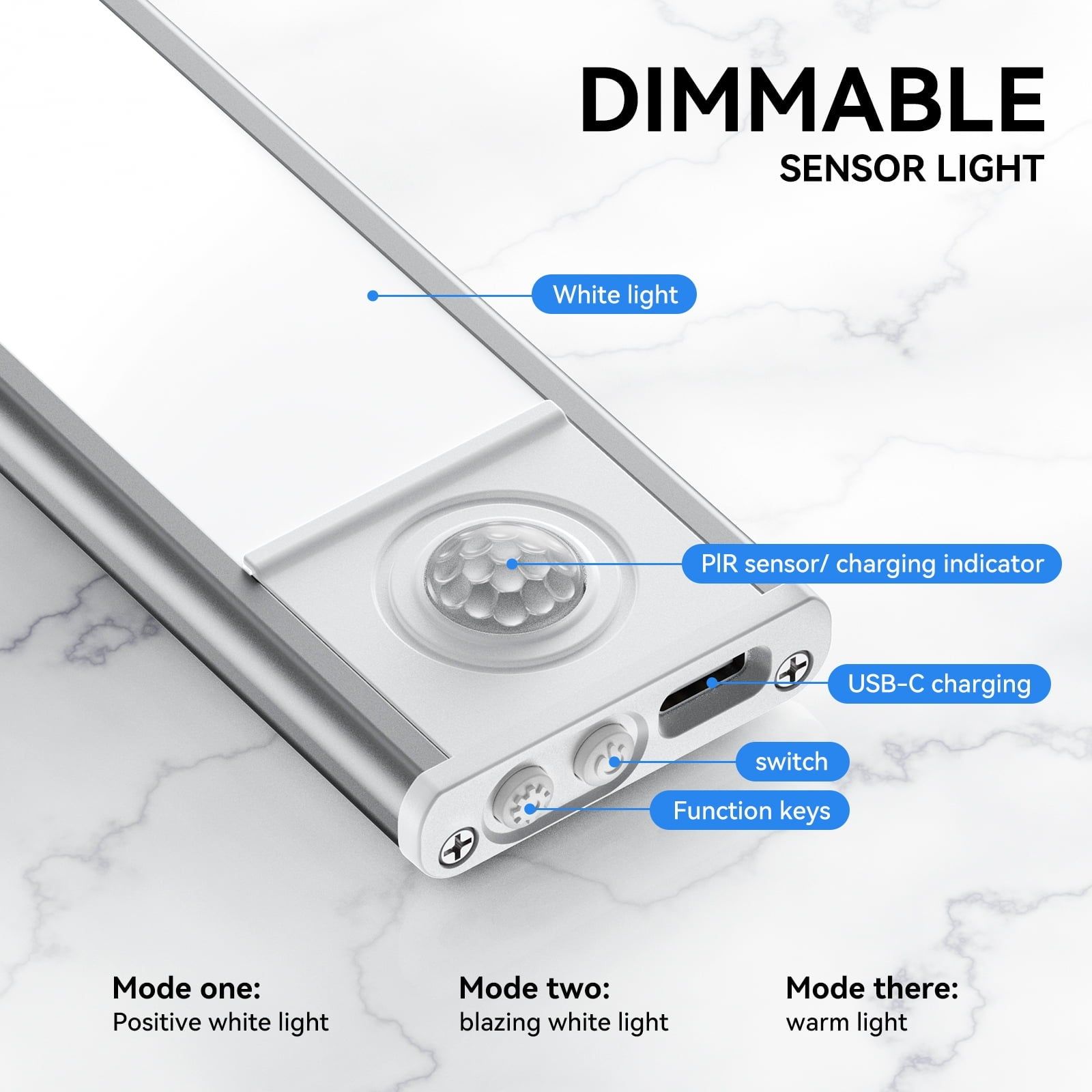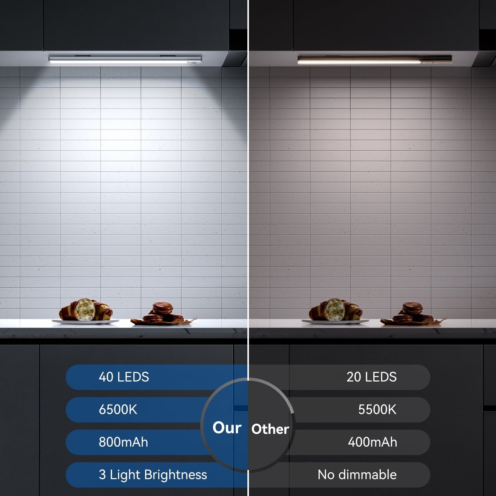 Bonacell Under Cabinet Lights,40 LED Rechargeable Battery Operated Motion Sensor Light Indoor, 2 Pack Magnetic Dimmable Closet Lights, Wireless Under Counter Lights for Kitchen, Stairs