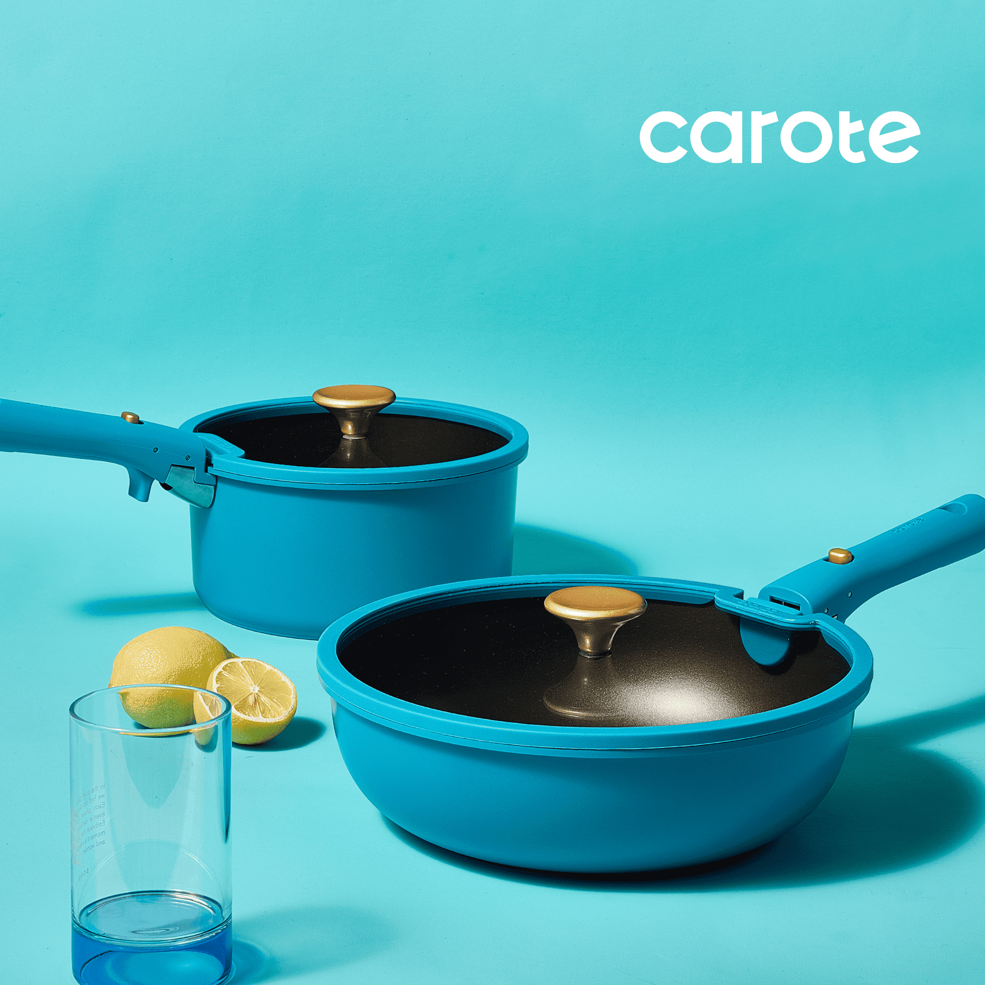 Carote 21 Pcs Nonstick Cookware Sets, Pots and Pans Set with Detachable Handles, Oven/Dishwasher Safe, Stackable Kitchen Cooking Set, Induction Cookware, Peacock Blue