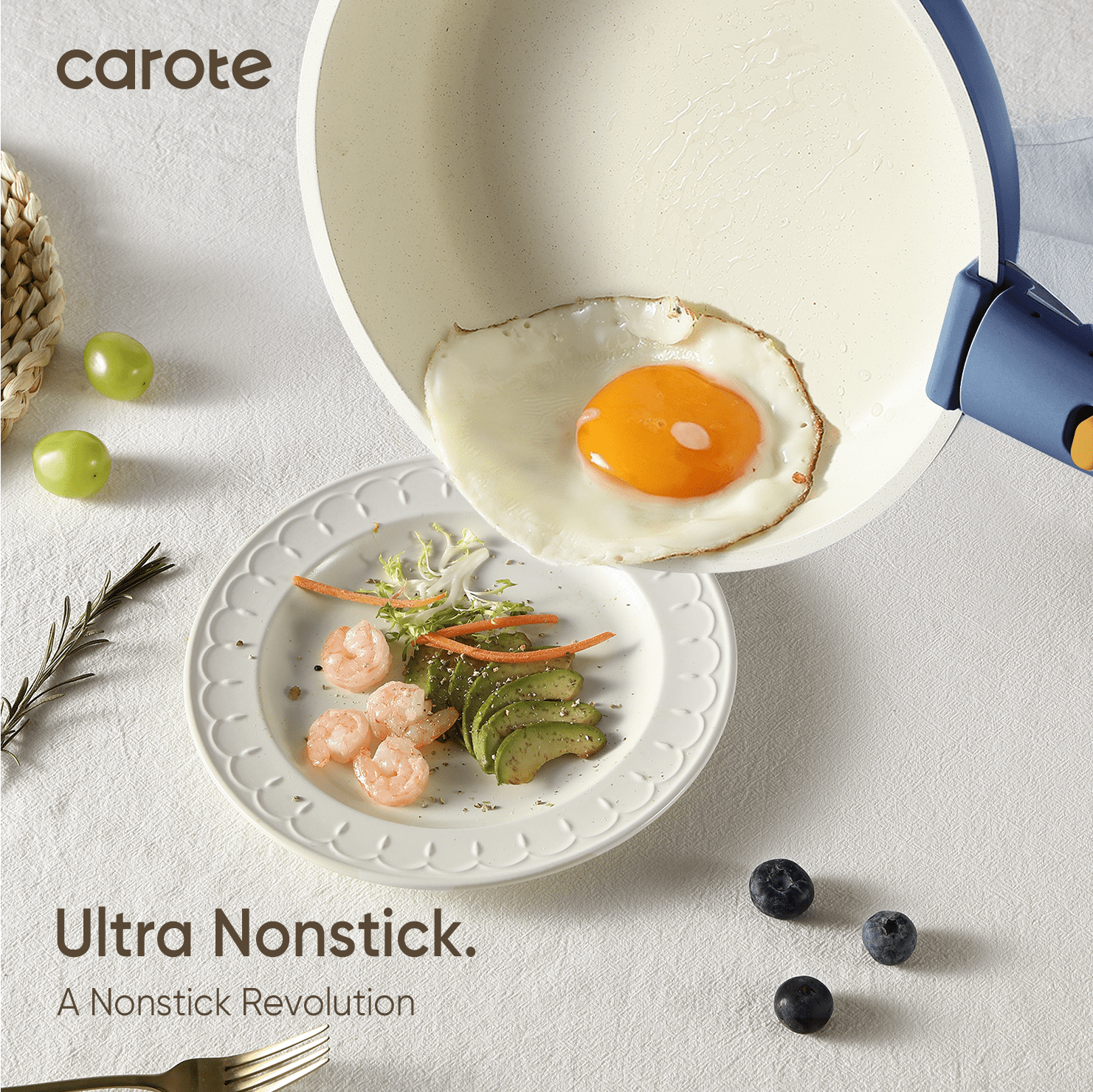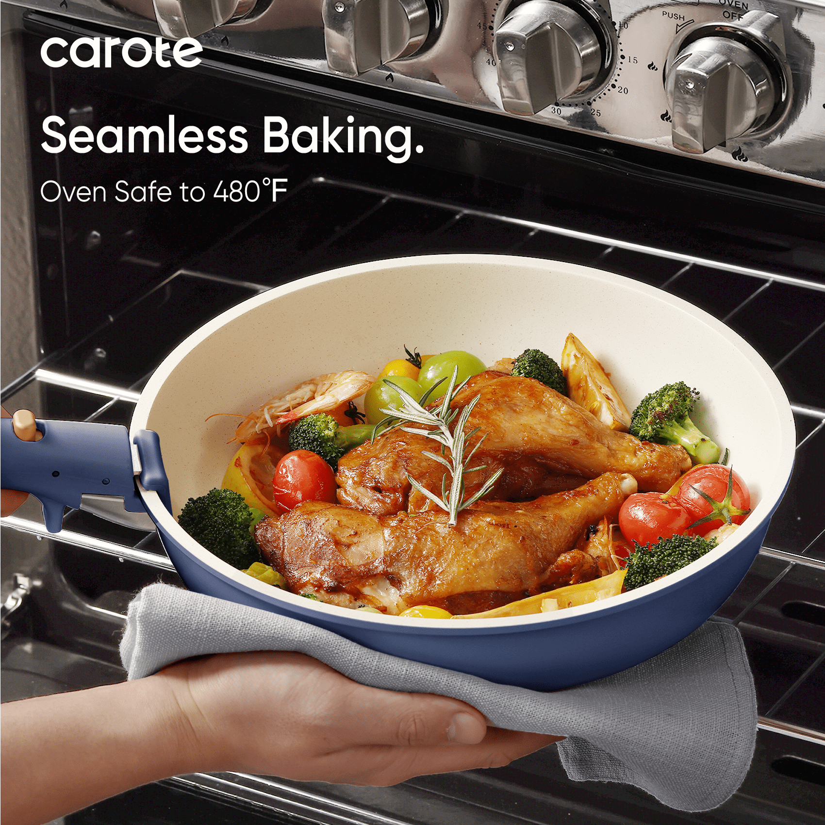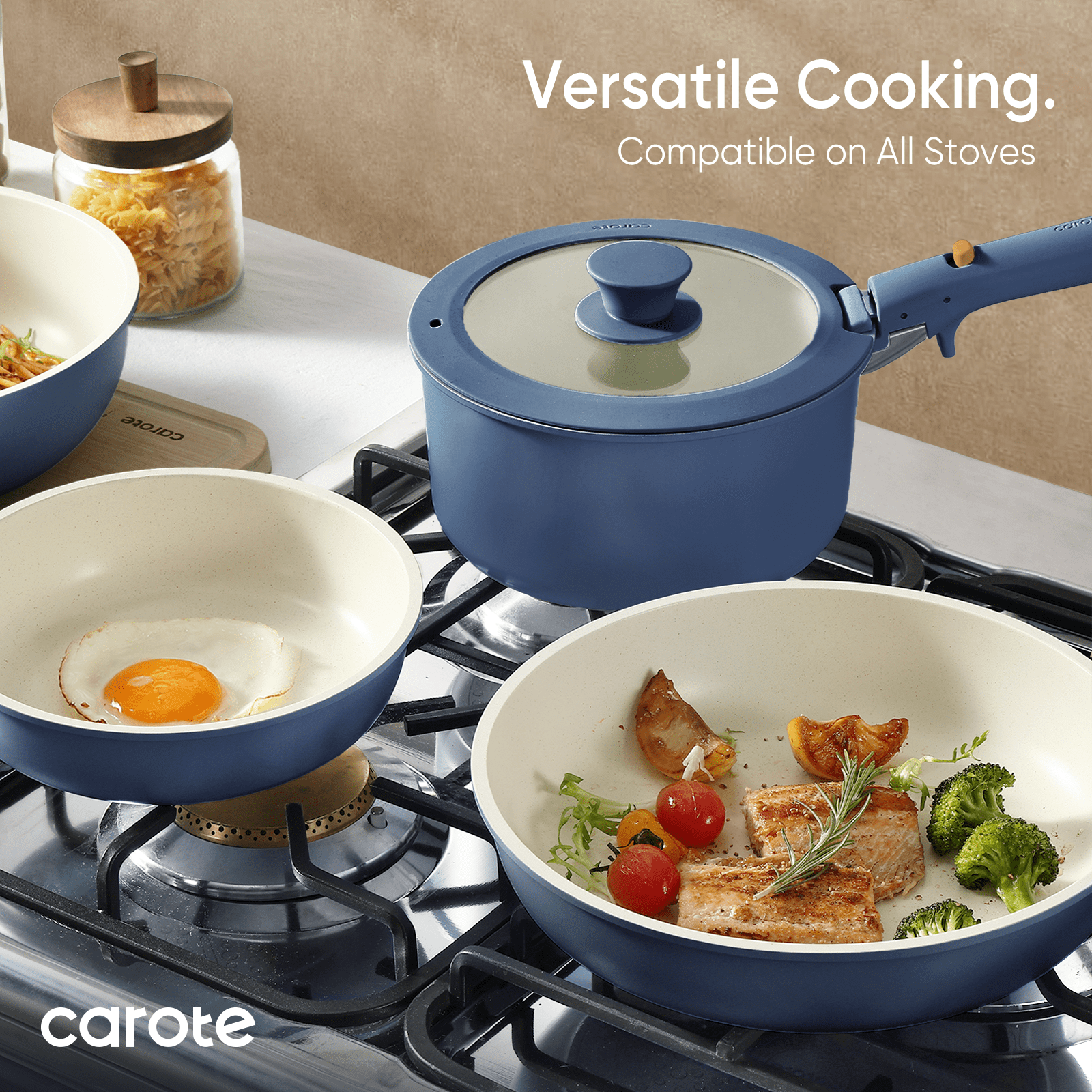 Carote 5 Pcs Pots and Pans Nonstick, Cookware Set with Detachable Handles, Oven Safe, Induction Ready, Stackable Kitchen Cooking Set, Navy Blue