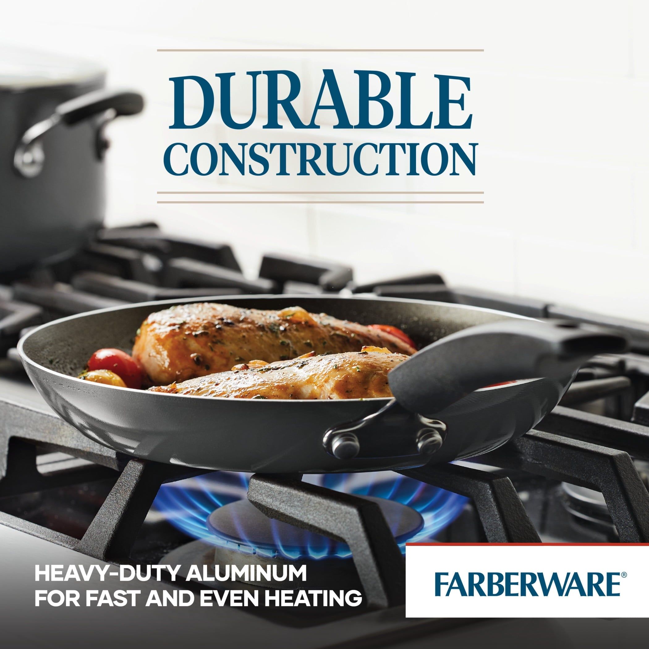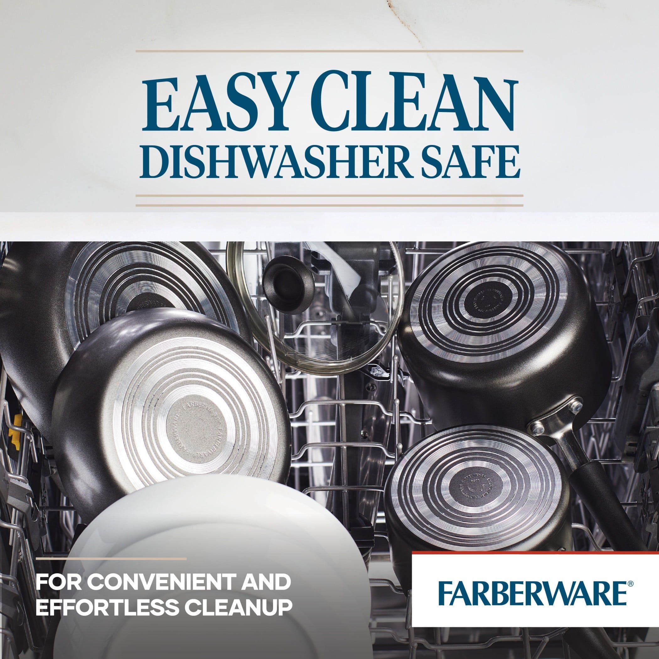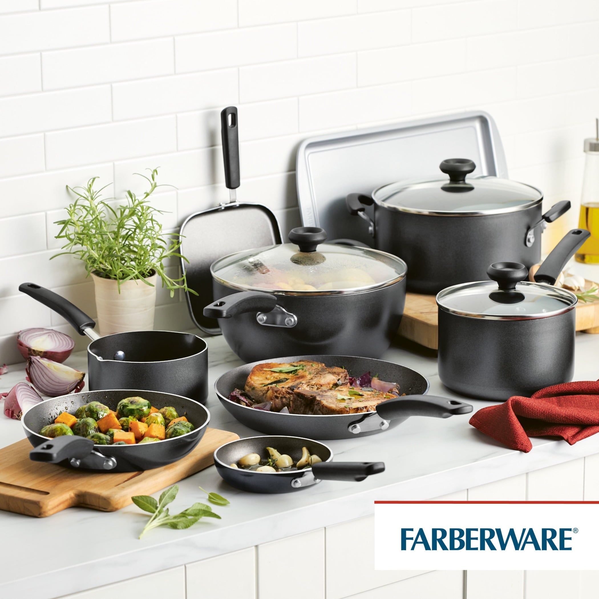 Farberware Easy Clean 20 Pcs Nonstick Cookware Set and Glass Lids with Cooking Tools and Food Storage Containers, Dishwasher Safe, Gray