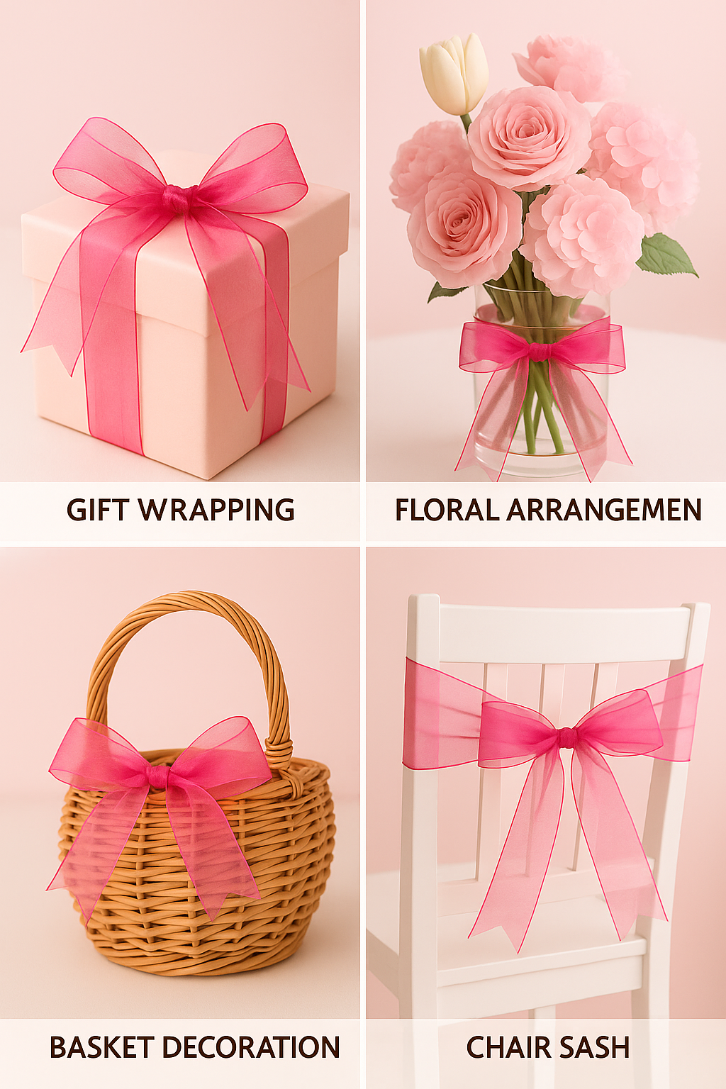 Pink-Solid Pink-Orange-Gold Satin Ribbon - Easy-Cut Gift Packaging Essential Perfect for Gift Wrapping!