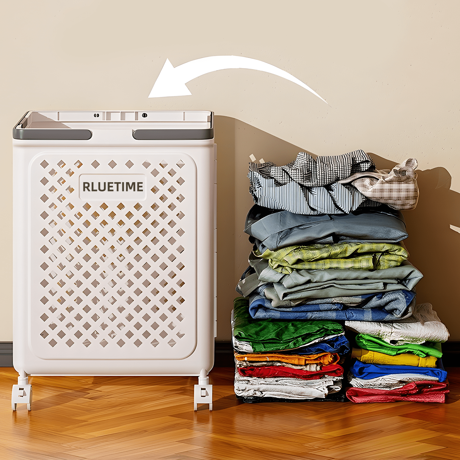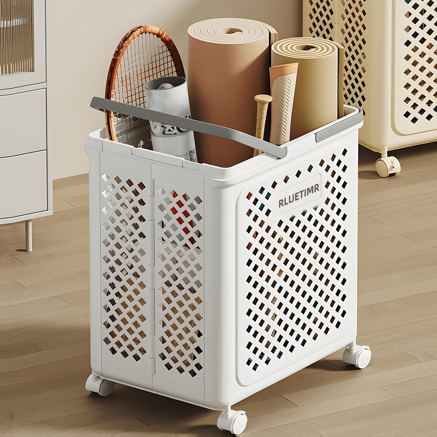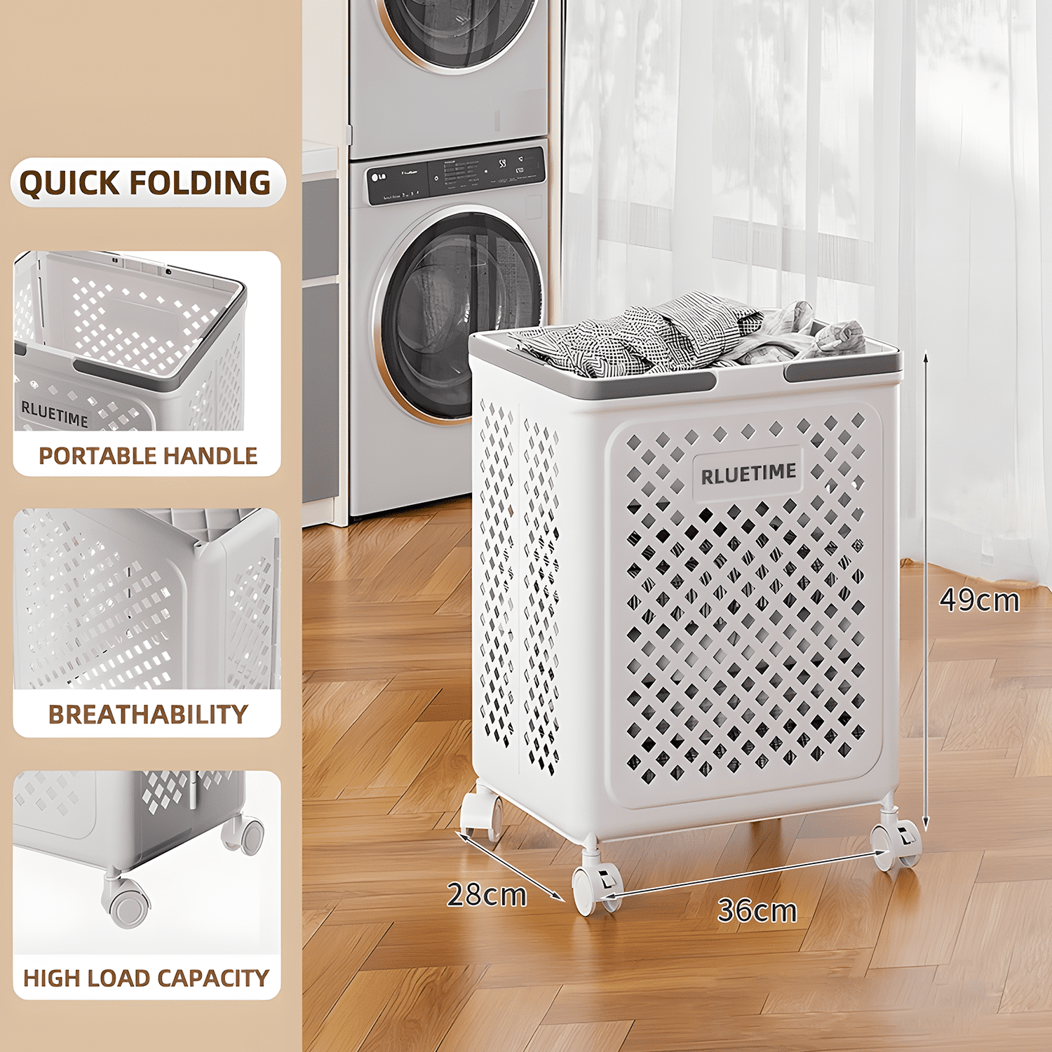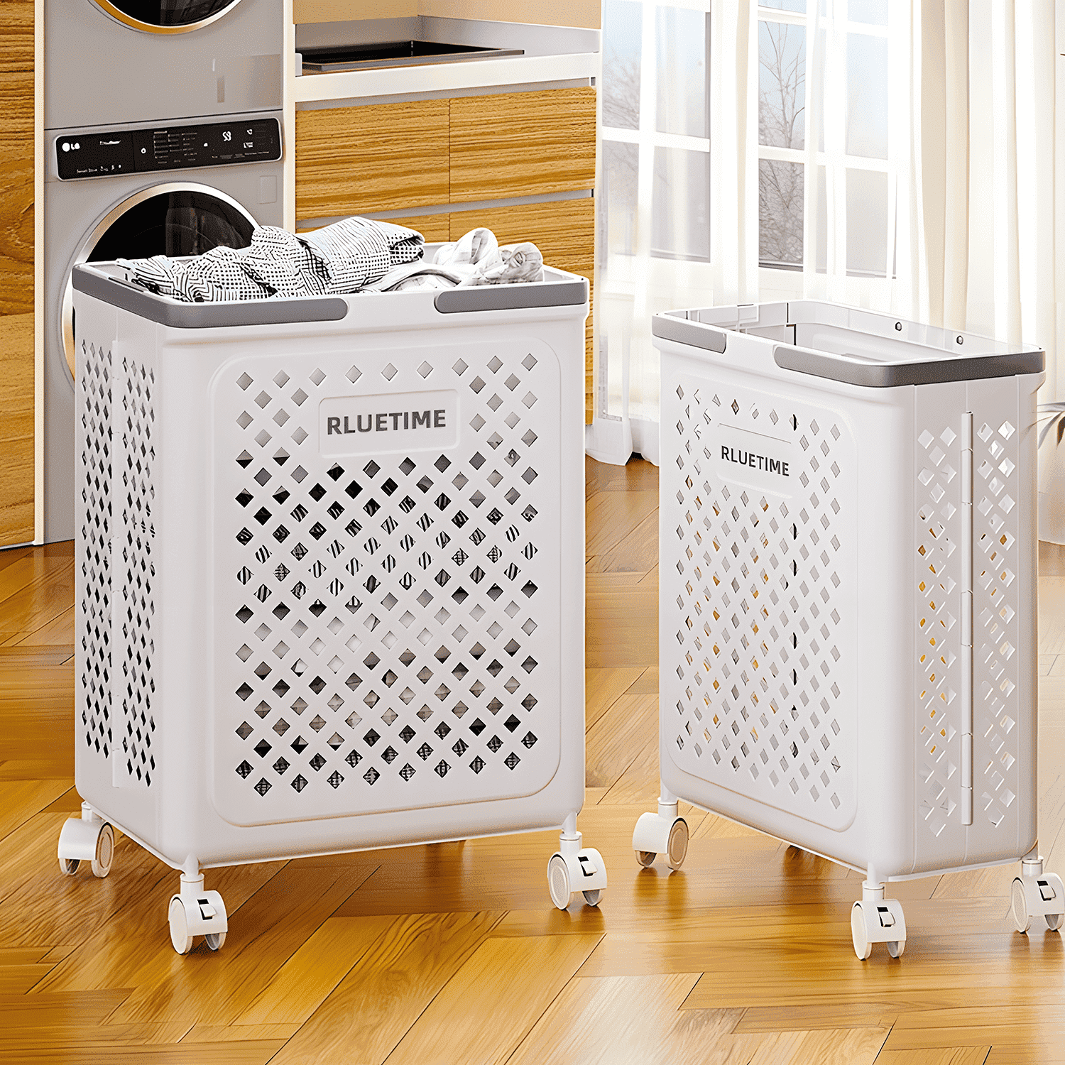 RLUETIME Collapsible Laundry Basket,Large Clothes Hamper with Wheels, Rolling Laundry Cart for Laundry Room Organization