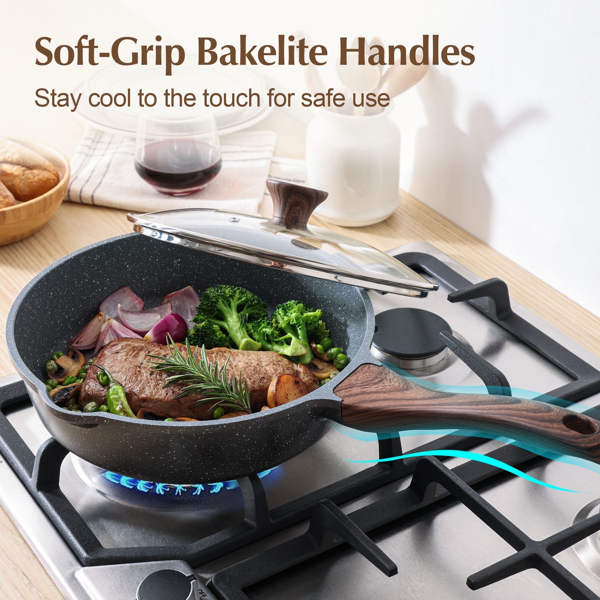 SENSARTE Nonstick Pots and Pans Set, 10Pcs Healthy Non Stick Cookware Set with Pots Protectors, Induction Kitchen Cookware Sets Gray