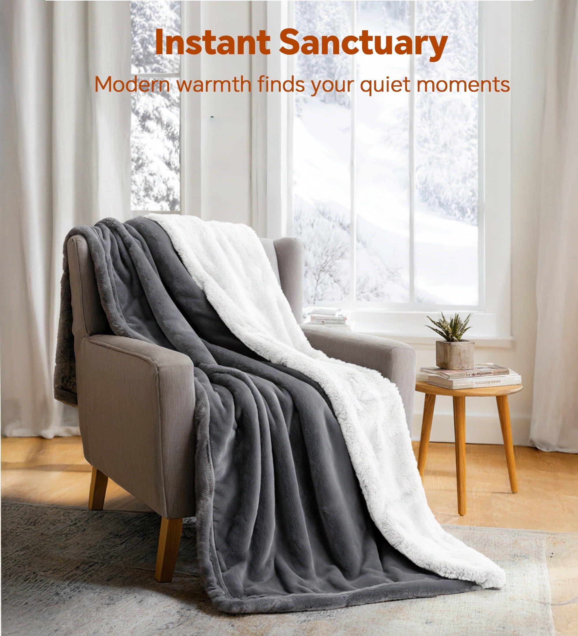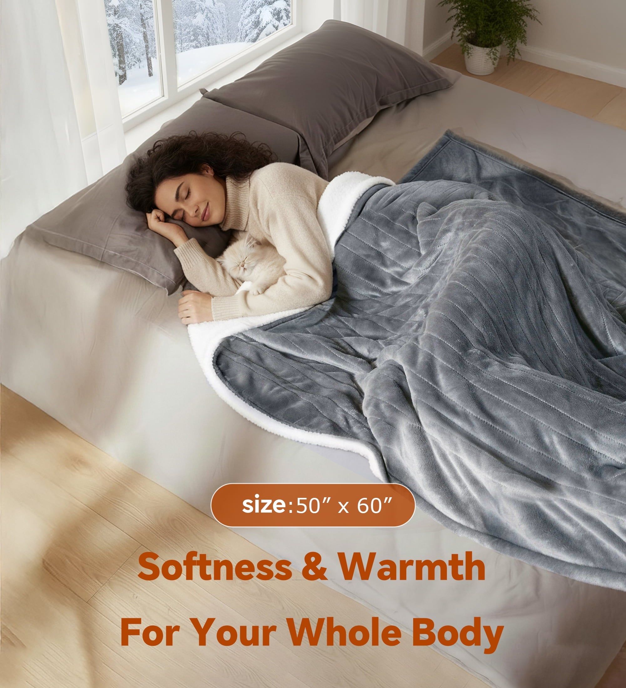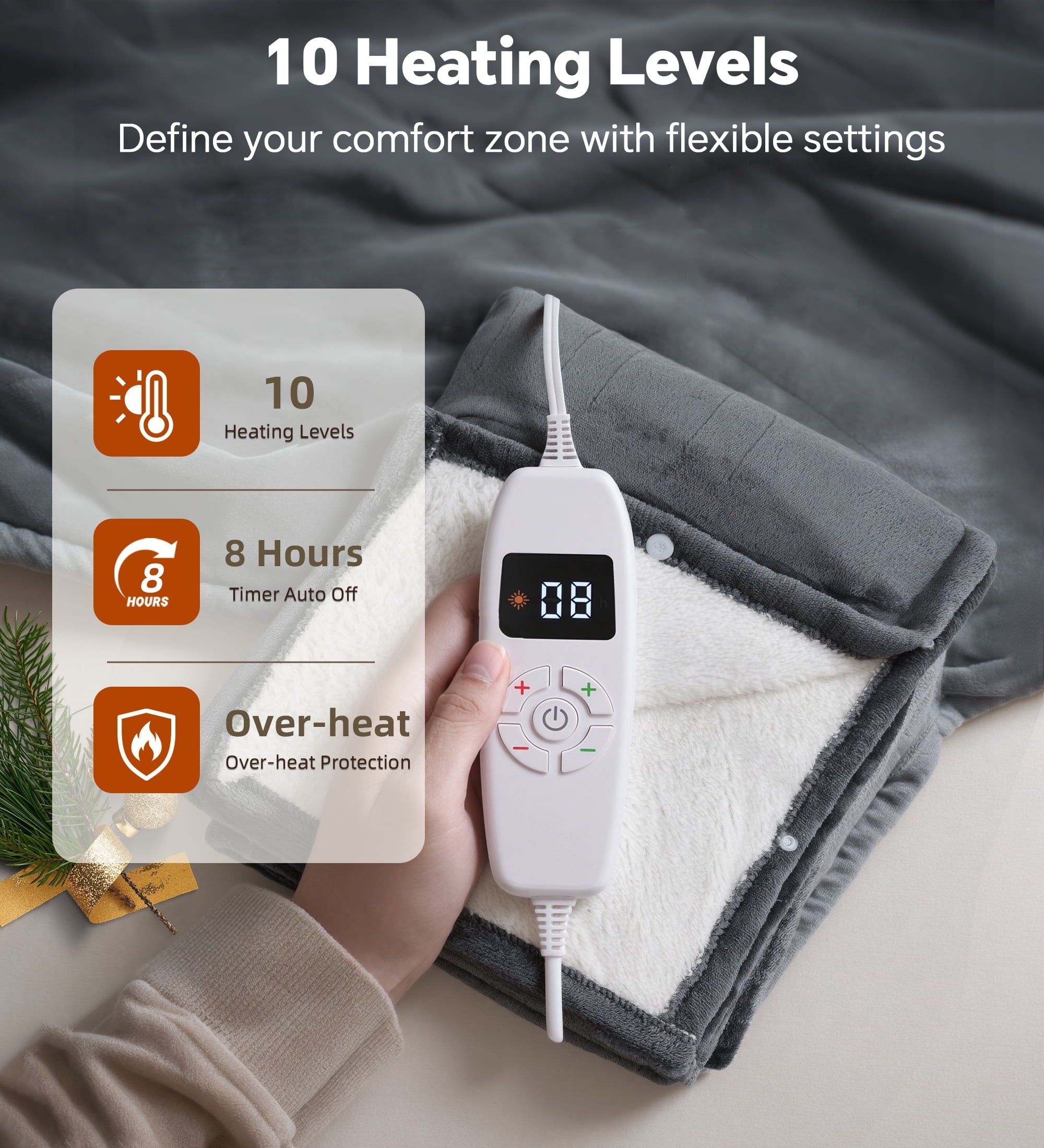 YGXNEWER 50 x 60 Electric Heated Blanket with 10 Heating Levels & 1-8H Auto-off, Machine Washable Flannel & Sherpa, Gray & White