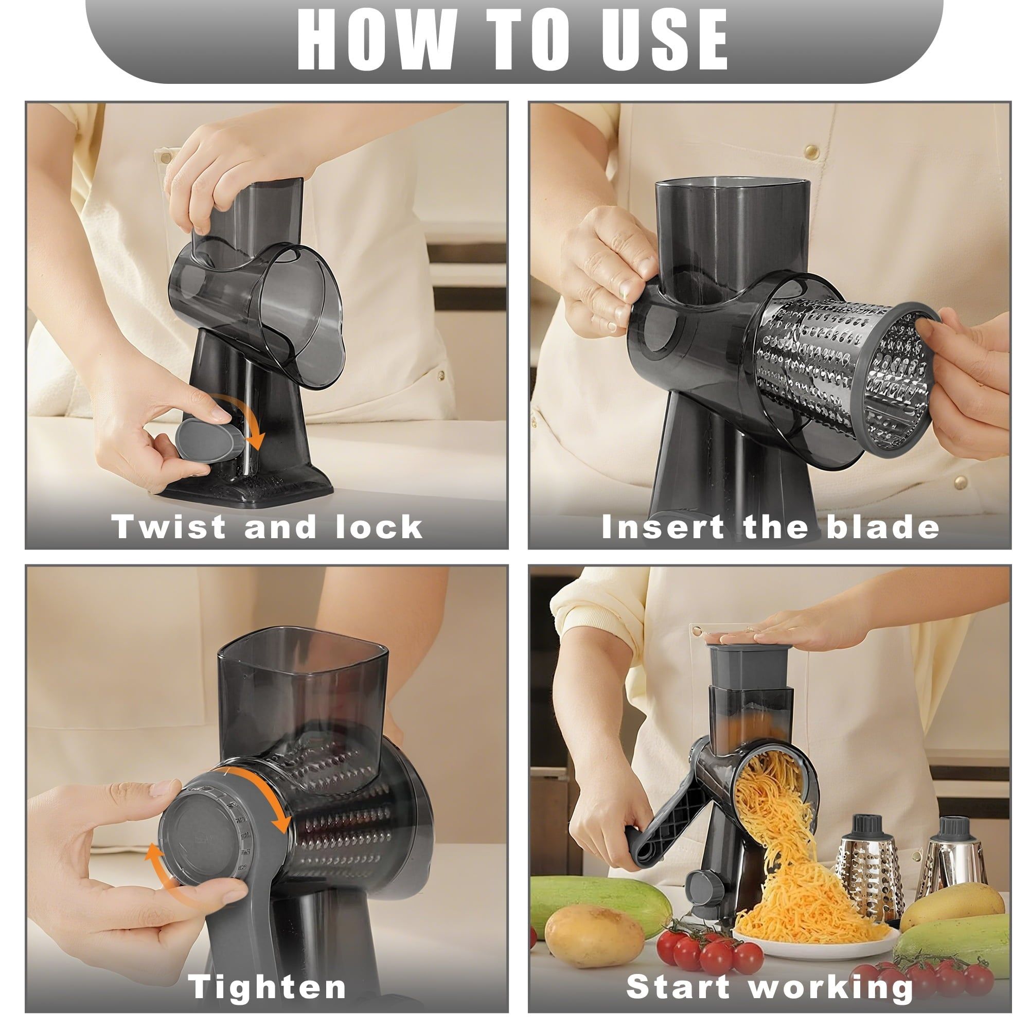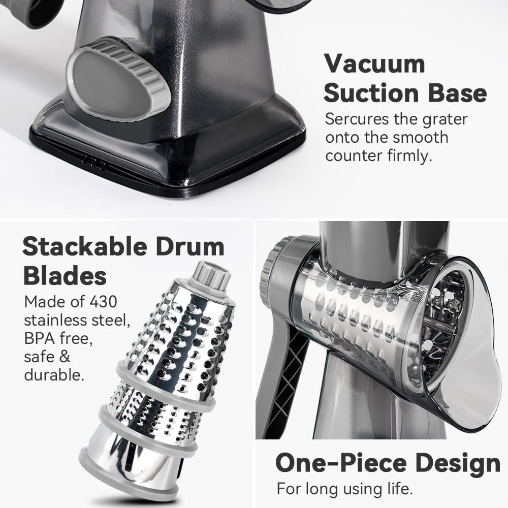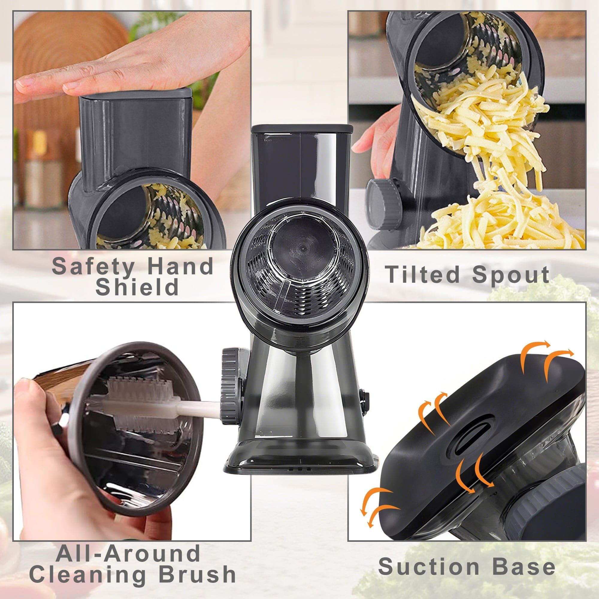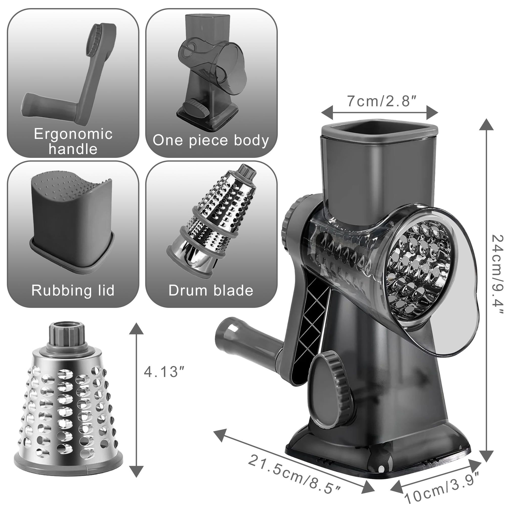 YUOFD Rotary Cheese Grater, Handheld Cheese Shredder with 3 Blades for Fruit, Vegetables, Nuts,Dishwasher Safe